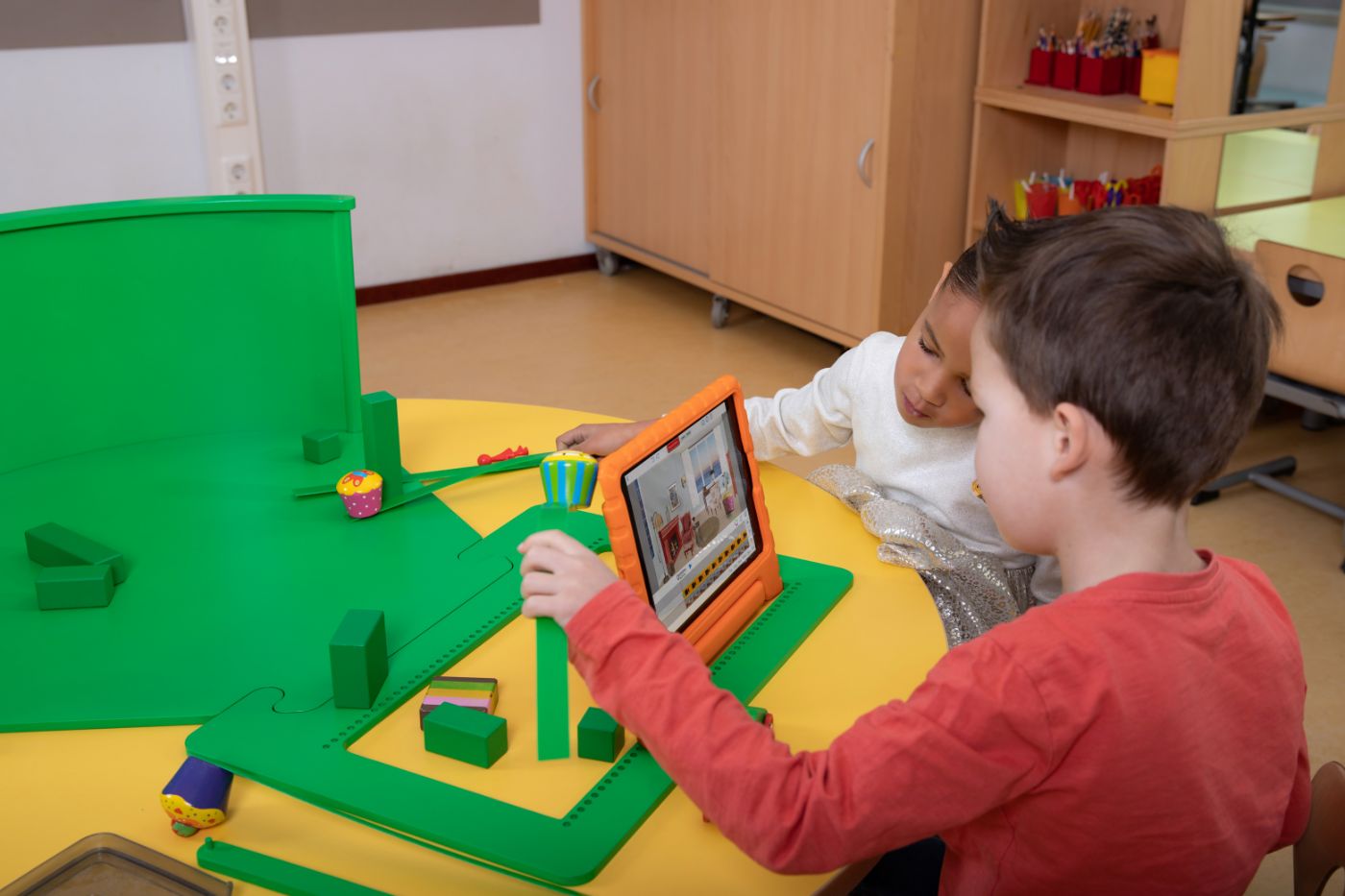 ‘We hebben meegedaan aan een pilot met leskisten vanuit het bestuur (PCOU Willibrord). In de leskisten zaten allerlei soorten robotjes, dat vonden de kinderen prachtig. Bij het materiaal uit de leskisten heb ik steeds nagedacht over hoe we dat konden integreren in het lesaanbod. We willen digitale geletterdheid bij ons op school echt via vakintegratie aanbieden, dus dan ga ik op zoek naar de meest geschikte lessen en materialen. Bijvoorbeeld de BeeBot, die kun je voor verschillende doelen van taal en rekenen en bij allerlei thema’s inzetten. Die hebben we nu zelf op school aangeschaft, want die biedt volop mogelijkheden voor vakintegratie.’