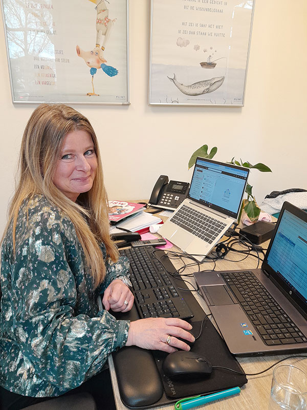 “Ik was helemaal niet van plan om in het onderwijs te gaan werken. Maar ik heb drie kinderen die op deze school hebben gezeten. Vanaf het begin was ik een betrokken ouder. Ik ging mee op uitstapjes, hielp waar ik kon. Toen de jongste in groep 8 zat, was de musical mijn laatste activiteit. Ik merkte dat ik dat jammer vond. Ik dronk nog een bakkie koffie met de directeur om afscheid te nemen en hoorde toen dat er net een vacature was vervuld voor administratief medewerker. Ik had al ervaring met dat werk en dit voelde als een gemiste kans!