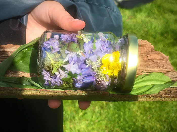 Er gebeurt buiten zoveel meer dan als je binnen stil op je stoel zit. Ik laat bijvoorbeeld de zintuigen van kinderen werken door dingen te zoeken met een bepaalde kleur en daar dan een kunstwerk van te maken. Ik laat ze geblinddoekt aan een boom voelen. Of elkaar begeleiden op een pad van touwen. Aan dingen ruiken of iets proeven. Wat leeft er in dat slootje? En om al die activiteiten heen kun je verhalen vertellen.”