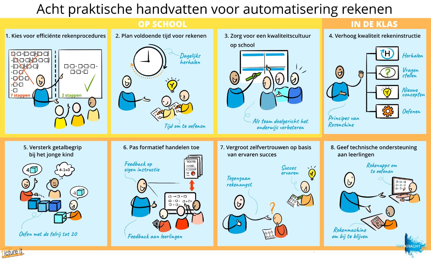 Figuur 1 – Acht handvatten voor het versterken van het automatiseren van rekenvaardigheden (bron: Stichting leerKRACHT)